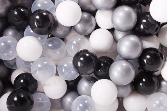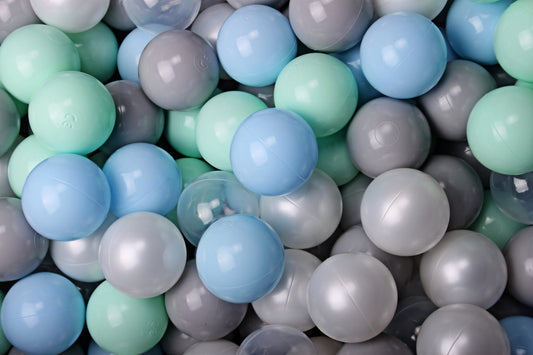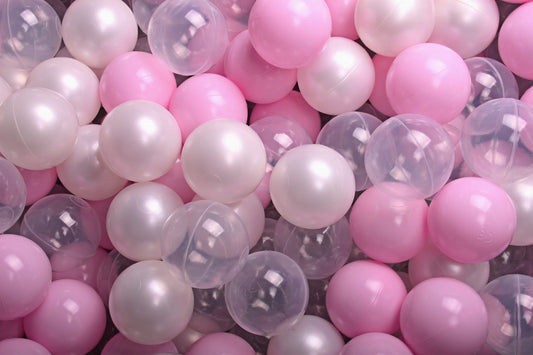 Round ball pit with 200 balls, 90x30cm, light gray, cotton